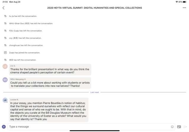 本次活动于8月27日圆满落下帷幕,当天,在埃克塞特大学人文学院全球事务副院长梅利莎·帕西佛(Melissa Percival)的主持下,各位老师和同学进行了在线讨论,并举办了闭幕式。