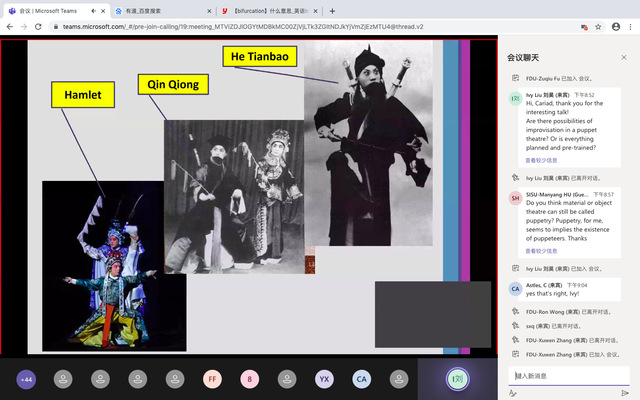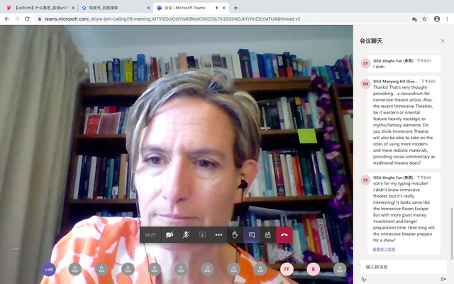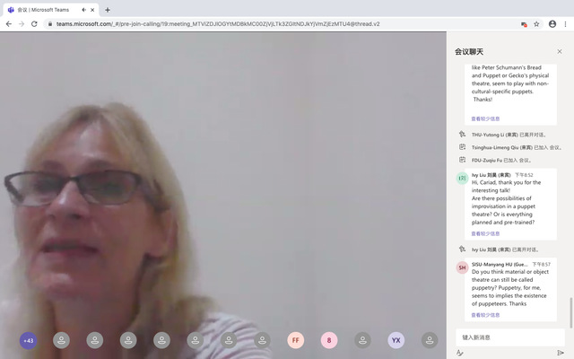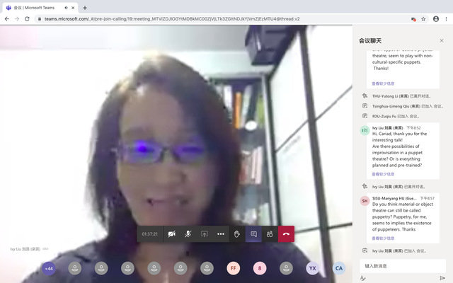 8月25日的交流内容以跨文化沟通为主题,以戏剧为核心,埃克塞特大学戏剧专业的卡里亚德·阿瑟尔斯(Cariad Astles),简·米林(Jane Milling)以及清华大学的刘昊老师分别针对中西方偶戏剧场的传统与创新、沉浸式戏剧在中英两国的实践情况以及莎士比亚戏剧在中文语境中的改编进行演讲,对中西方戏剧的沟通方式、内容与目的进行了简单对比。必赢官网同学对于沉浸式戏剧进行了提问,在关于沉浸式戏剧的排练周期以及其在中国本土的融合问题上和老师们进行了讨论。