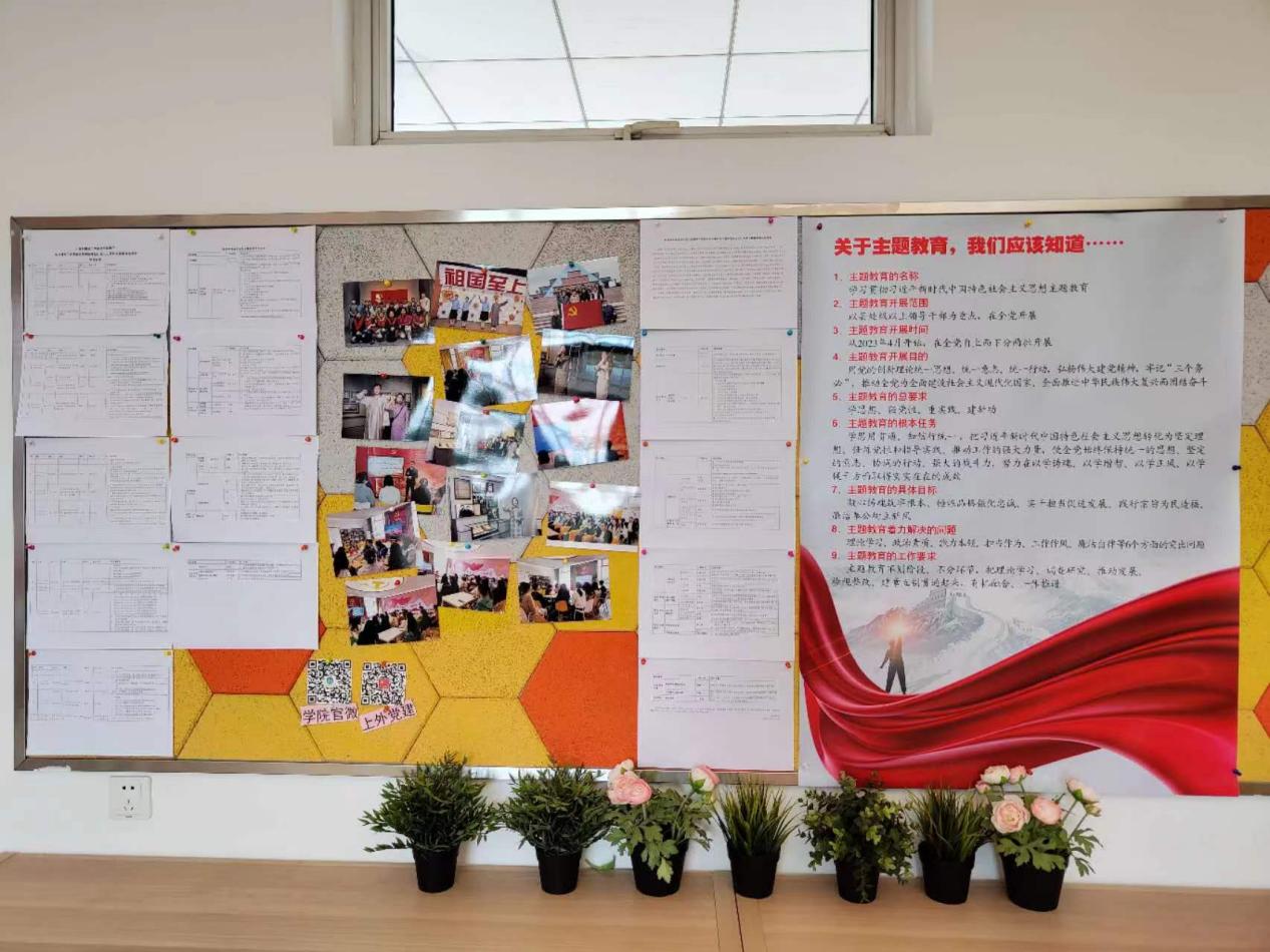 学院坚持分层分类计划、分层分类推进,分别面向学院班子、学院教职工、学生党支部书记召开主题教育学习动员会,根据主题教育的总要求和学校实施方案,制定学院工作方案和班子成员学习计划表、班子成员读书班安排计划表、支部学习计划表等三张表,根据不同群体确定学习主题、提供学习资料、进行动态跟进。坚持“每周计划、每周小结、每周跟进、每周沟通”制度,确保主题教育相关工作安排落实到位。同时,学院通过海报、宣传角等方式营造学习氛围,加强对主题教育重要精神的宣传贯彻。
