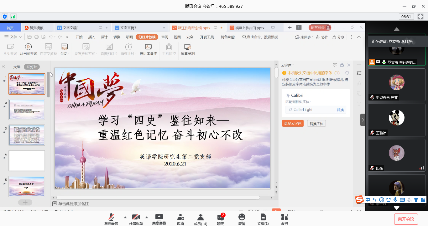 党支部书记李钰煊强调,理想信念是共产党人的精神动力和力量源泉。中国共产党人之所以能战胜难以想象的困难和挑战,表现出超乎想象的强健的生命力,就是因为有信仰力量的支撑。学习“四史”的关键,在于从“四史”教育中汲取信仰之力,把稳思想之舵。