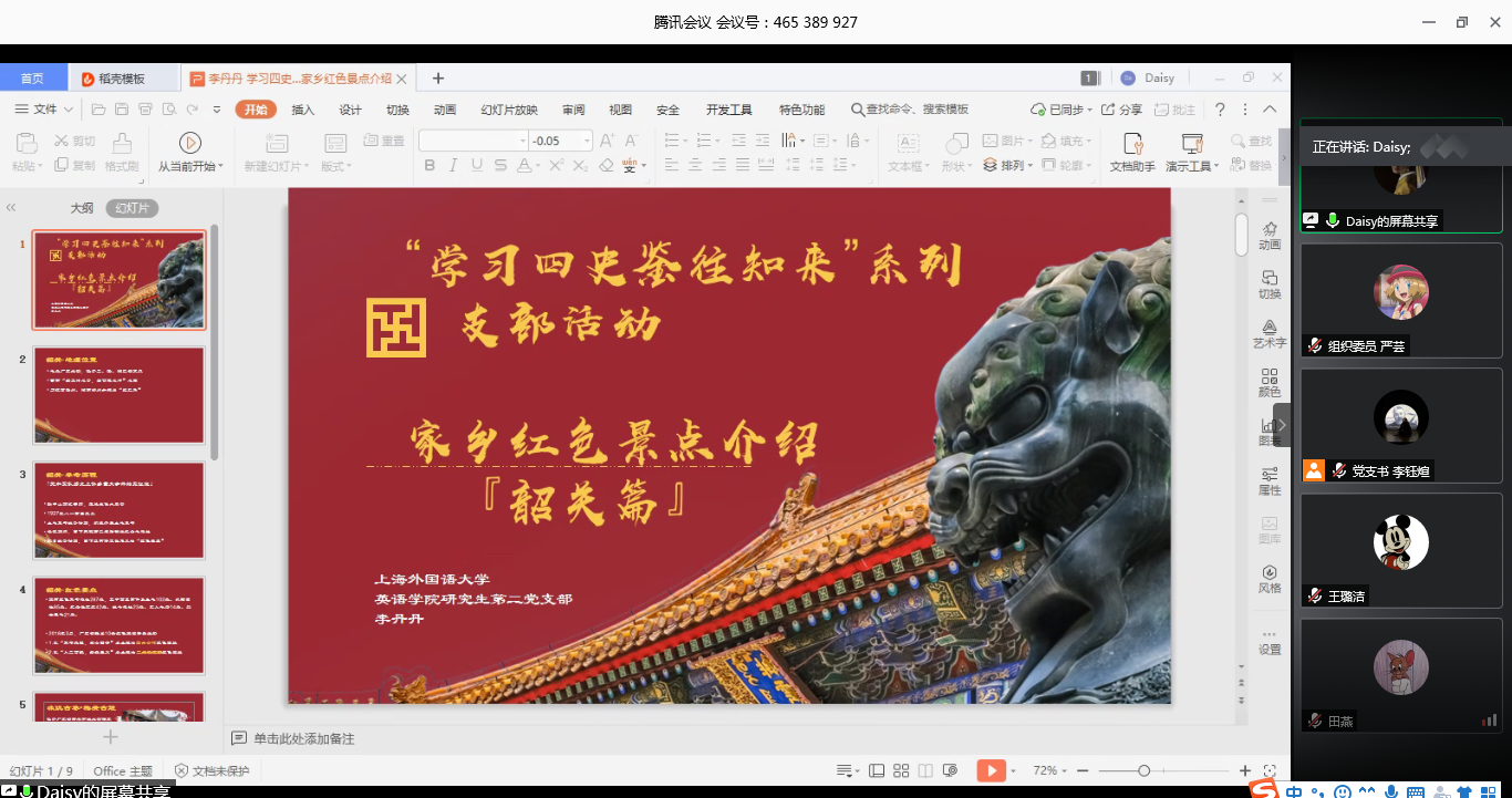 作为中国共产党的诞生地,上海在全国率先开启了“四史”学习教育的热潮。从时间上来说,“四史”学习提供了一个以史鉴今,从历史中汲取前进力量的契机;从空间上来说,“四史”学习是在全国铺开的为了讲好中国故事的学习。必赢71886网址登录研究生第二党支部以“学习‘四史’,鉴往知来”为支部“四史”学习主题线,在疫情特殊时期将革命故事记载、历史文化还原、家乡风貌变迁作为三个党群阵地概念,以线串点,深入探寻中国故事,增强党性修养,进一步丰富样板党支部的功能建设内涵。支部成员重走8个省市14处红色文化纪念地,在鲜活的史料中体悟“四史”,重温红色记忆,传承红色基因。